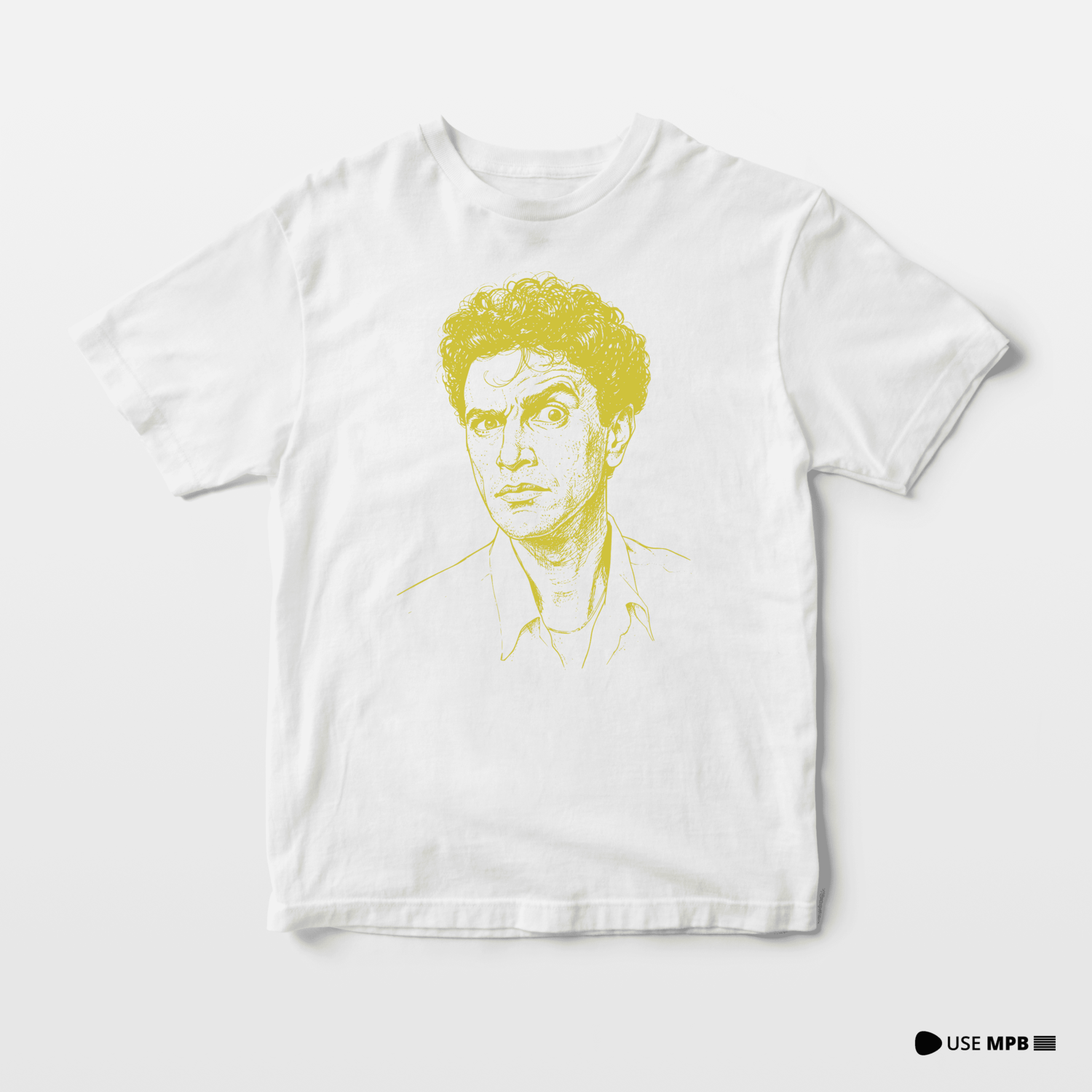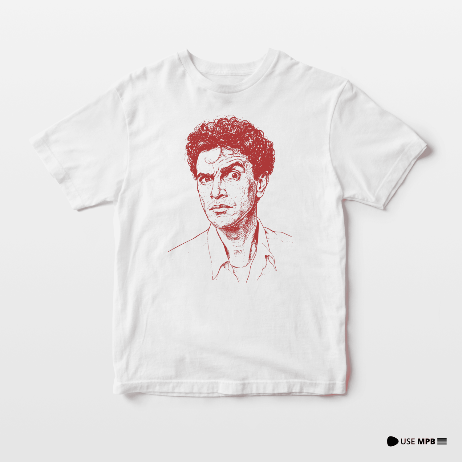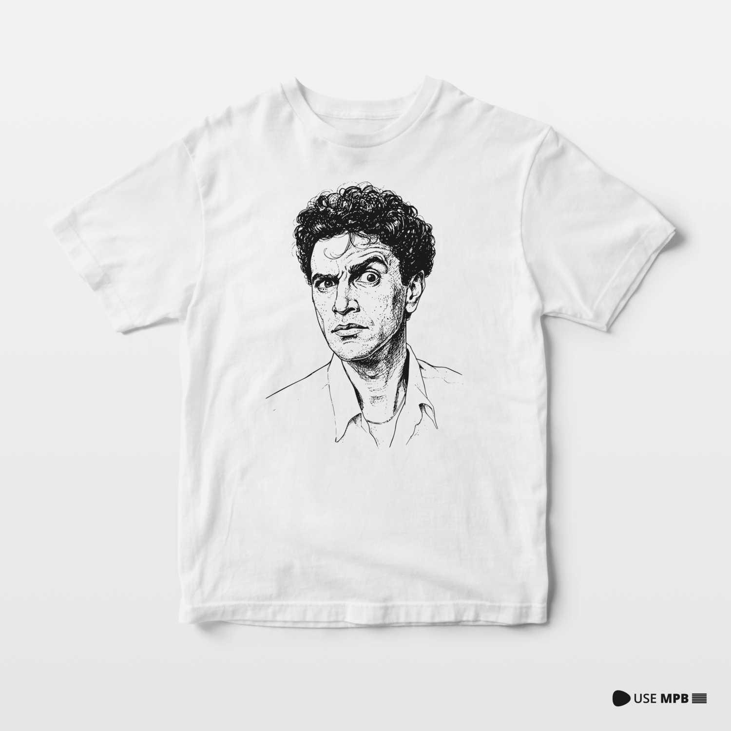 Homenageie a genialidade lírica e a mente por trás do Tropicalismo. A Camisa Caetano Veloso apresenta o artista em um retrato detalhado e expressivo, que reflete sua profundidade e intensidade artística.